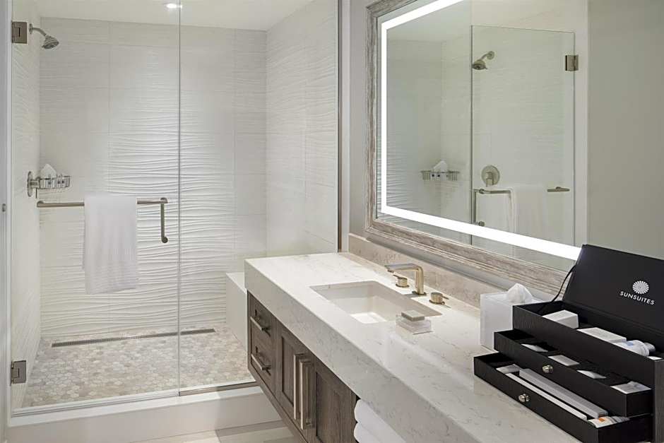 The suite offers air conditioning, a tea and coffee maker, a seating area, a safe deposit box and a flat-screen TV with cable channels. The unit has 1 bed.